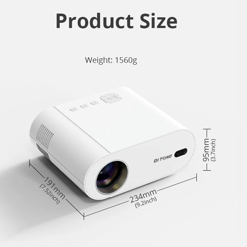 Introducing the DITONG Portable Projector LED Smart Android 11.0, a versatile and powerful projector designed to bring a cinematic experience to any setting. With its high brightness, Full HD resolution, and advanced Android system, this projector is perfect for both home and portable use. Enjoy effortless setup, seamless streaming, and energy-efficient performance with the DITONG Portable Projector.