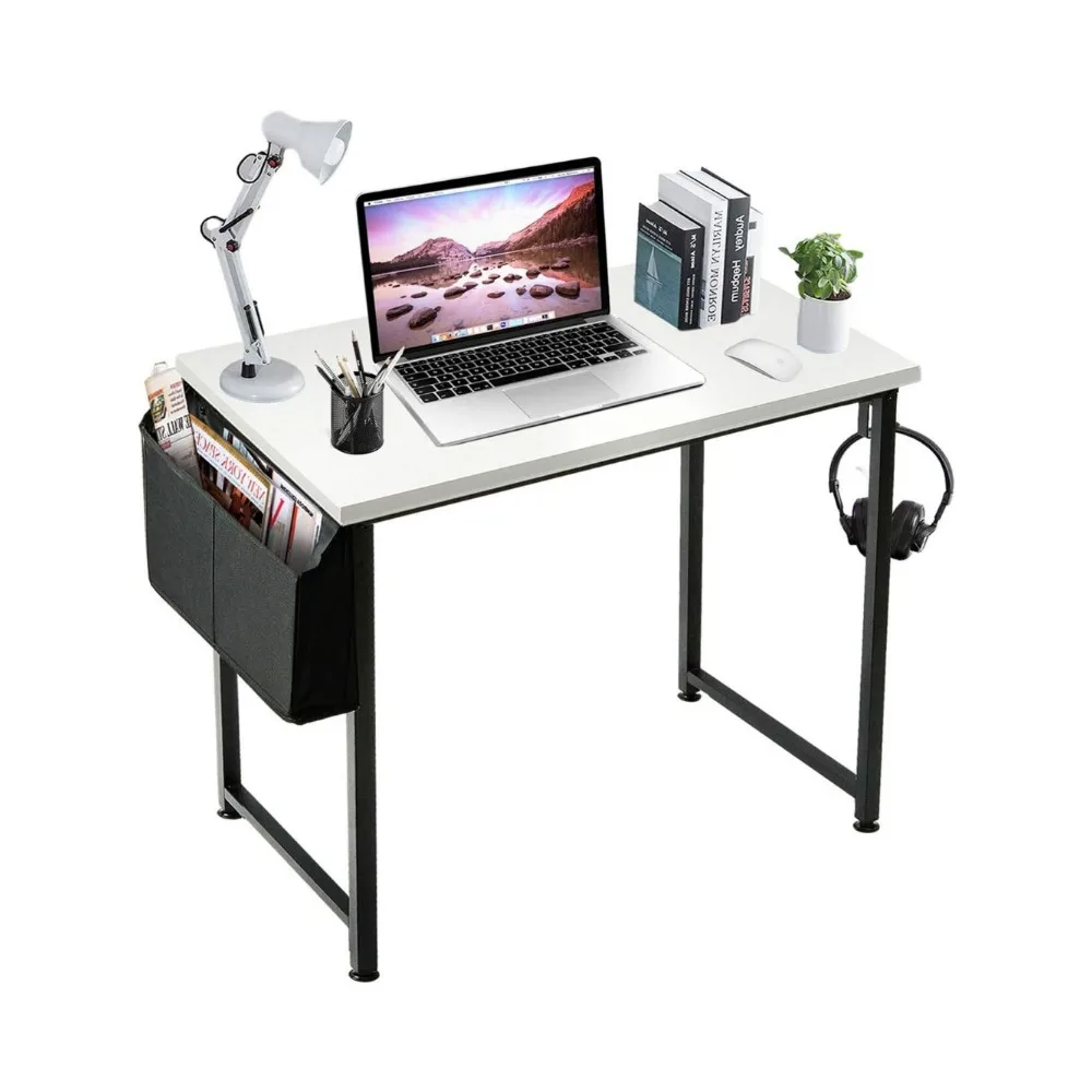 Introducing the sleek and efficient computer desk, designed to blend seamlessly into any modern home or office setting. This desk is the epitome of contemporary design, offering a clean, white desktop paired with a robust black metal frame. It’s the perfect choice for students, teens, and adults who need a compact yet functional workspace.