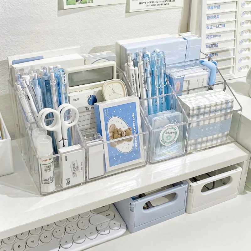 Introducing the Sleek Acrylic Desk Organizers Elevate your workspace with our Acrylic Desk Organizers, where functionality meets modern design. Available in both clear and dark transparent finishes, these organizers promise not only to declutter your space but also to add a touch of contemporary elegance. Choose from two versatile designs – a compact 3-grid version for essential organization or a more expansive 5-grid model for those who need a little extra room.